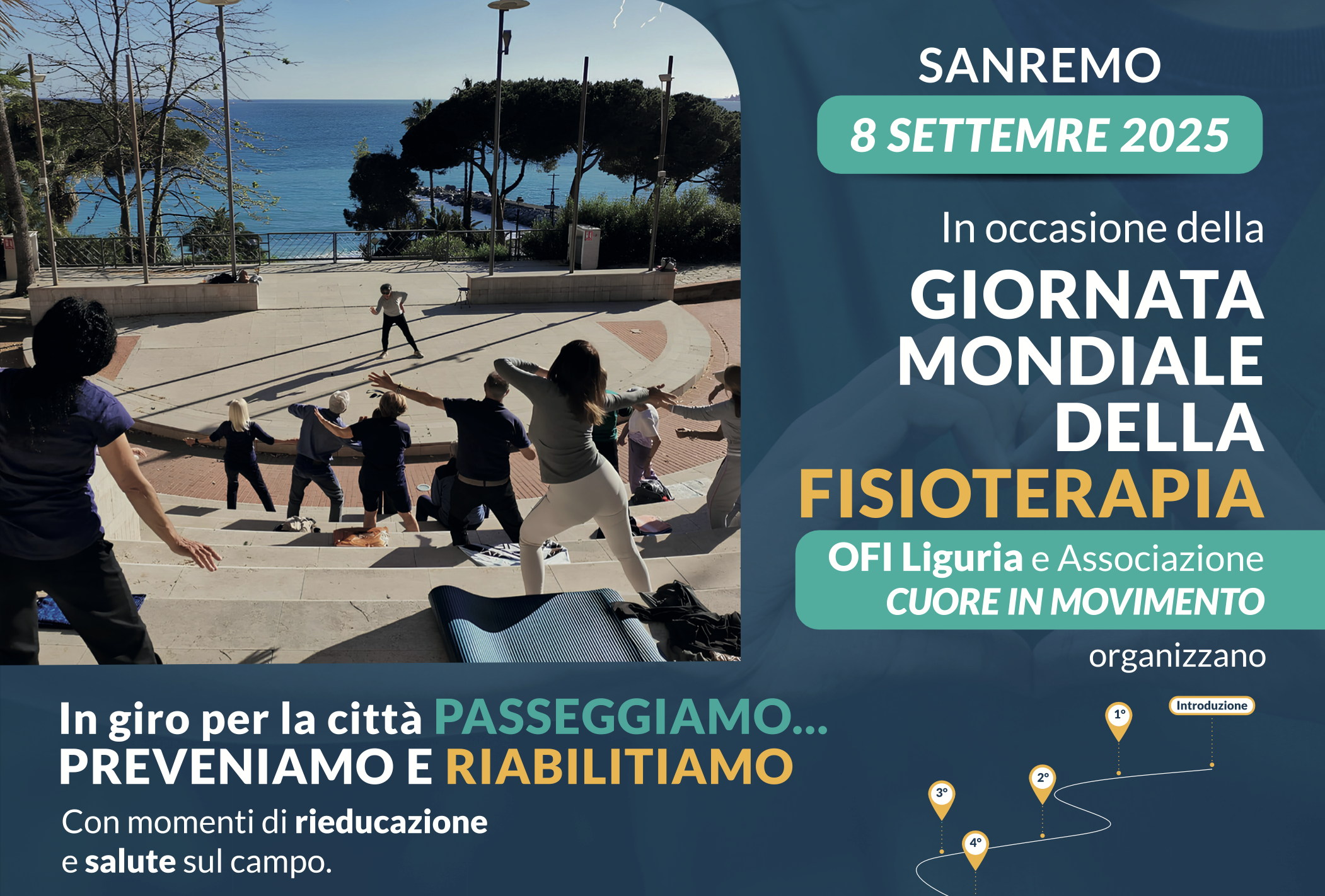 • Riprendono lunedì 23 settembre (tempo permettendo) le passeggiate del gruppo di cammino di Cuore in Movimento. Tutti i lunedì e giovedì: ritrovo ore 9 presso Pian di Nave a Sanremo. Per ulteriori informazioni inviare una e-mail a info@cuoreinmovimento.it